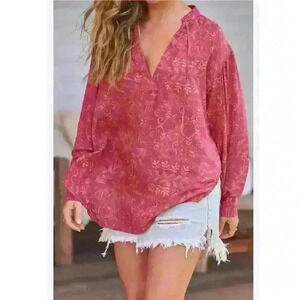 A pretty petal print defines the Mia Tunic Top from Free People, enhanced with a feminine V-neckline and beautiful loose sleeves.