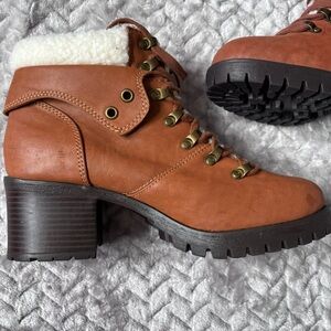 MIA Tallia Hiker Boots Chunky Faux Fur Ankle Lace Up Block Heel 9 Womens Brown