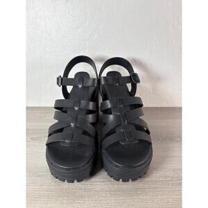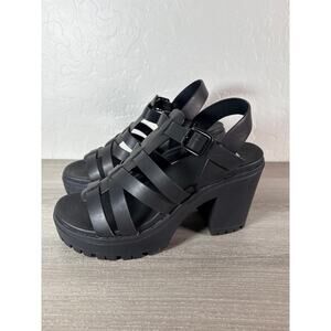 MIA Tira Black Block Heeled Sandals Platform Slingback Size 8 NEW