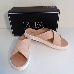 MIA Vikki Crisscross Platform Sandals Slip On Slides Blush Pink Size 11 NEW