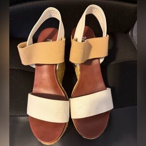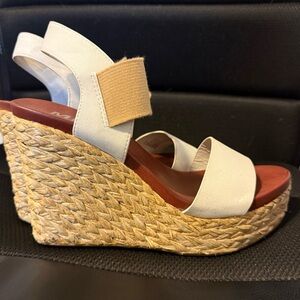 MIA Villa White and Tan Woven Wedges - Size 8.5