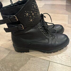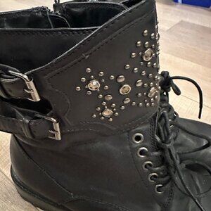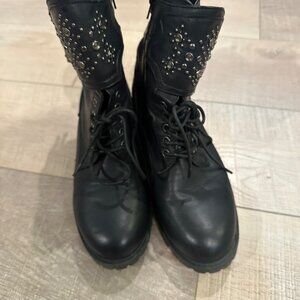 MIA WOMENS BLACK RHINESTONE COMBAT BOOTS 8.5
