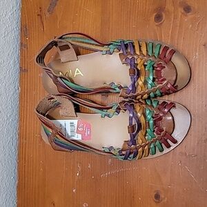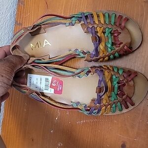 like new mia women's colorful multicolor leather huaraches boho,bohemian, hippie,gypsy sandal