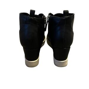 Step out in style with these sleek black wedge ankle boots. Perfect for any occasion, they offer both comfort and elegance.