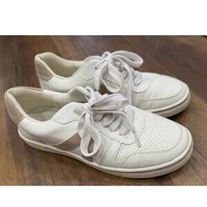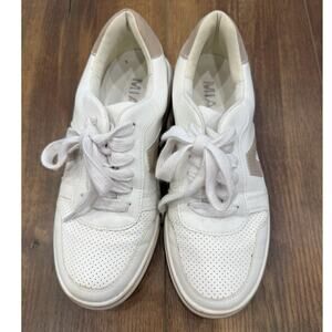 MIA White Leather Low-Top Sneakers with Taupe Logo Accent Size 7