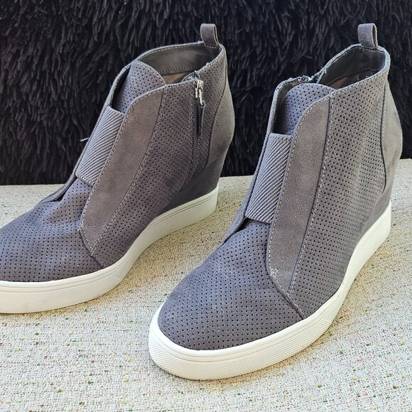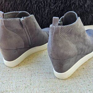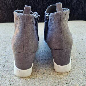 MIA Women Sneaker Wedge Shoes Ankle Booties Wedge Heels Gray Suede Side Zip