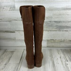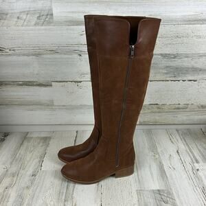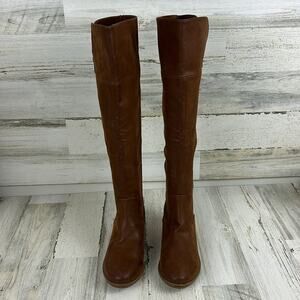 MIA women’s size 5M over-the-knee boots in soft brown faux leather. These tall boots feature a side zipper for easy wear, cushioned insole for comfort, and a sleek boho-inspired design. Perfect for pairing with leggings, skinny jeans, or dresses, they’re ideal for fall and winter outfits. A versatile boot that combines on-trend style with everyday wearability.