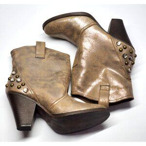 MIA Women's Gold Metall Studded Cowgirl Western Ankle Boots Size 7 733