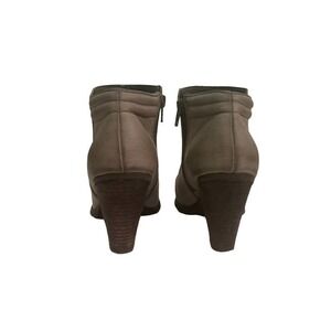 Ankle boots/bootie. Zipper for easy on/ off. 3.5 inch stacked block heel. Non-slip sole. Lightly padded footbed for all day comfort. Excellent preowned condition! Very minor creasing, slight staining from normal wear, otherwise like new. Offers welcome!