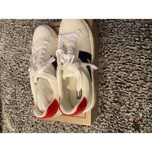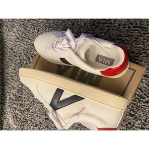 Elevate your style with the MIA Women's Sneakers, where classic design meets modern comfort. These white leather sneakers feature a chic low-top silhouette, accented with pops of red and navy for a touch of flair. The cushioned insole ensures all-day comfort, while the lace-up closure offers a secure fit. Perfect for casual outings, weekend adventures, or even a relaxed day at the office, these sneakers are versatile enough for any occasion. Pre-owned and ready to add a stylish edge to your wardrobe.