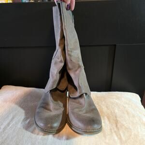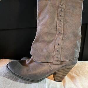 MIA brown pull on boots size 10. Chunky heel, fold over shaft, mid calf.