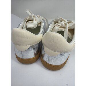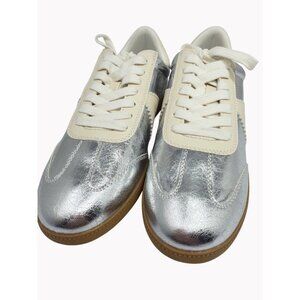MIA girl Womens 6 Silver Metallic Lace Up Sneakers Cream Accents New
