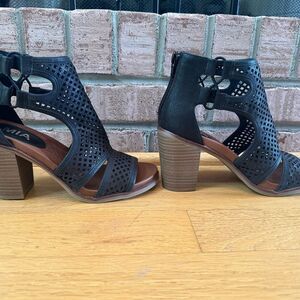 Elevate your style with these MIA black heels, featuring a unique perforated pattern for added flair. The medium-height chunky heel offers comfort and stability, while the ankle-boot design with a back zipper ensures a secure fit. Perfect for both casual and dressy occasions, these shoes combine elegance with a modern twist.