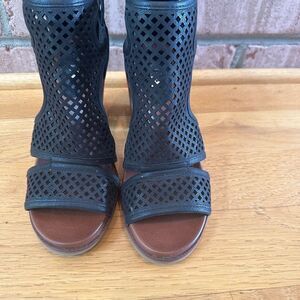 Worn one time for about 3 hours. Very comfortable.  Zippers work.  Size 6.5.  I scuffed one of the heels see pic.
