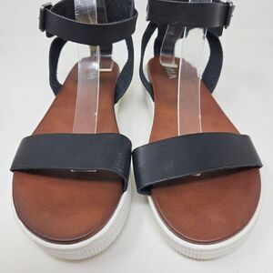 MIA Ellen Platform Black Strqppy Leather Sandals Buckled Ankle Strap Size US10