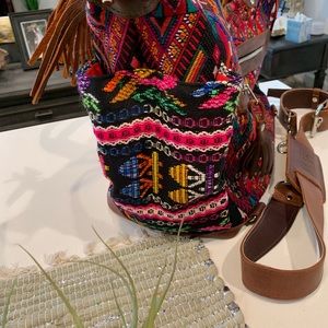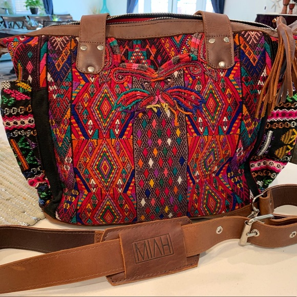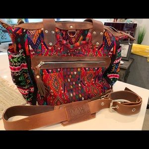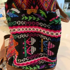 Beautiful large hand bag/weekender! Hand woven fabric. Beautiful soft brown leather.