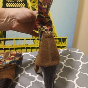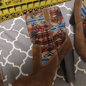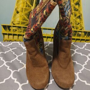 MIA Indian AZTEC Brown and Multicolor Patterned Boho Women's Heeled Boots Sz.9