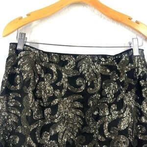 MIAMI Black & Gold Sequin Baroque Pattern Mini Skirt