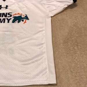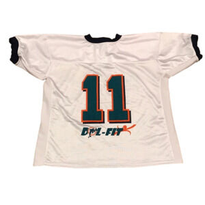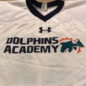 White vented cloth; navy blue accents; 21” neck-to-bottom