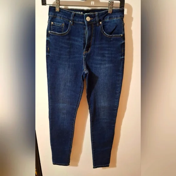 This is a pair of Miami High Rise super skinny jeans with two front pockets and two back pockets. Jeans have been worn and washed. They are in excellent condition.