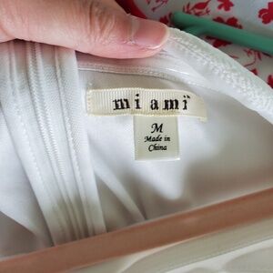 SIZE: MEDIUM CONDITION: USED COLOR: WHITE BRAND: MIAMI LENGTH: TO KNEE NECKLINE: OFF SHOULDER