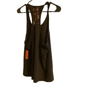Does have some lace on the back. It is pit to pit is 17 inches and 25 inches down