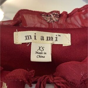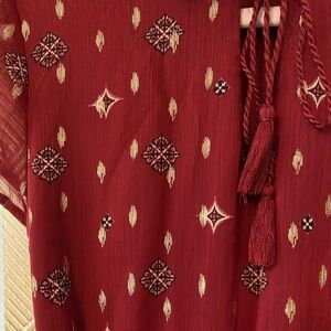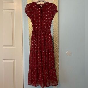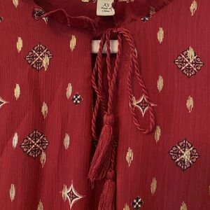 MIAMI by Francesca’s Boho Short Sleeve Maroon Dress with gold Foiling detail XS
