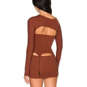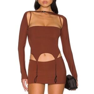 MIAOU Phoenix Strappy Top and Garters Set Cinnamon Brown Revolve