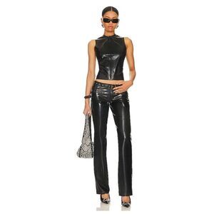 MIAOU Toni Black Latex Flares Buckle Cargo Pants Revolve Sz XXS NWT $450