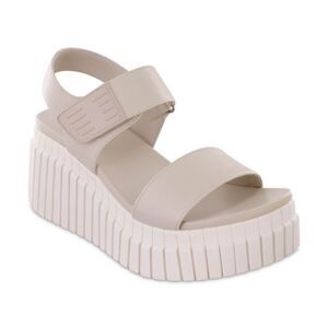 MIA Yuri Vegan Leather Cushioned Platform Wedge Chunky Sandal in Ecru Grey 10