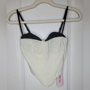 MICAS Contrast Strap Corset Beige Cami Top. Size S NWT