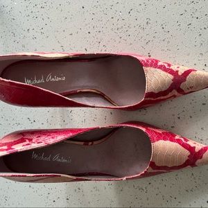 MICHAEL ANTONIO Snake Skin extra pointy toe stiletto