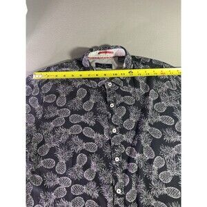 Relevant details: Slim fit, button down front, short sleeves, tropical pineapple print, soft breathable fabric