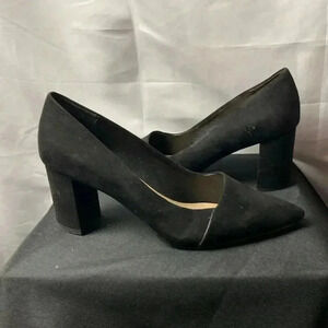 MICHAEL BY MICHAEL SHANNON WO SIZE 11 BLACK SUEDE SLIP ON CLOSED TOE PUMP SHOES BLOCK HEELS MEASURE APPROX 3” VERY GOOD CLEAN CONDITION