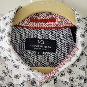 MICHAEL Brandon Unicycle Print Short Sleeve Button-up Rayon Casual Shirt Size L