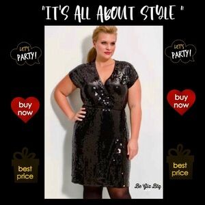 Fabulous Black Sequin Wrap Cocktail Dress Plus