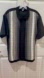 Michael Irvin 88 from Safire Silk, Inc men's relaxed fit retro bowling inspired shirt. The black knit with the front detailed with vertical stripes in hues of gray and off white. NWOT in size M.