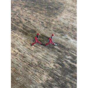 MICHAEL JORDAN SILVER - PLATED PAIR STUD EARRINGS SILVER RED JUMPMAN JUMP MAN