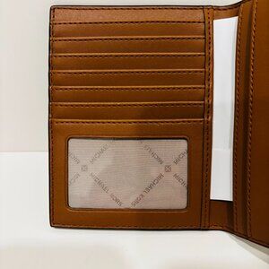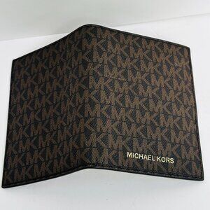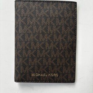 This NWOT Michael Kors passport case- Brown & Gold Signature wallet features 7 Credit Card slots, with one window pocket for ID. Store your passport, cash and credit card places for easy access.