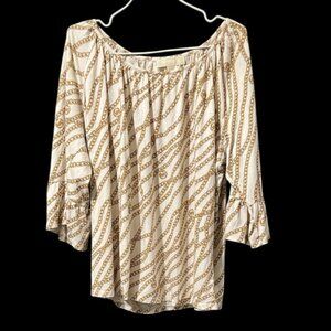 MICHAEL KORS 2X BONEGOLD CHAIN PEASANT STYLE BLOUSE COTTON MODAL