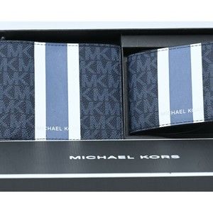 MICHAEL KORS 3 in 1 Wallet Box Set Signature/Stripe PVC Admiral Multi NWT $178.