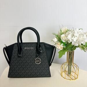 MICHAEL KORS 35F1S4VM2B AVRIL SMALL LOGO TOP-ZIP SATCHEL IN BLACK