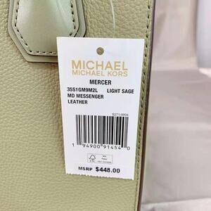 MICHAEL KORS 35S1GM9M2L Mercer Medium Pebbled Leather Crossbody Bag In Light Sage