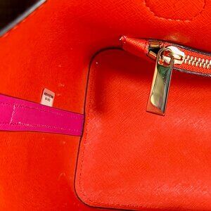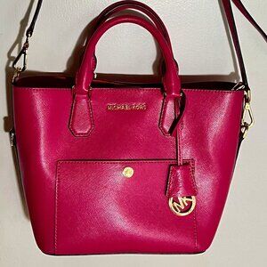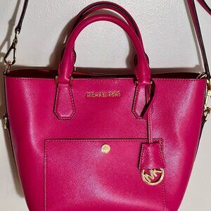 Brilliant fuchsia bag with bright red interior. Very thick structured bag with front slip pocket, crossbody chain, 4 feet and unique MK hangtag. Definitely a statement bag-NWOT