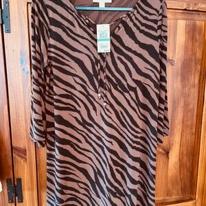 MICHAEL KORS Dress - fabric is Jersey so soft and is machine washable. Beautiful chocolate color and black zebra print. Never worn! Sleeves are not quite to the wrist. Smoke and pet free home.