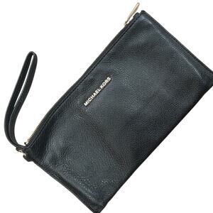 From Michael Kors is this adorably chic black genuine pebbled leather wristlet! One compartment with a slide pocket, handle measuring 13"! The purse itself measures 9.5" x 5.5", slightly oversized for a wristlet, and just beautiful! Excellent! Superb EUC Condition! **ABSOLUTELY GUARANTEED CONDITION: EUC MINTY-EXCELLENT TO LIKE-NEW, by Lily @HauteClub!***