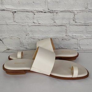 MICHAEL KORS 'AUGUST' LEATHER TOE-RING SLIP-ON SLIDE SANDALS IVORY TUSK 9