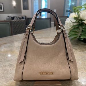 MICHAEL KORS Arlo Small Pebbled Leather Crossbody Shoulder Bag Pink Beige