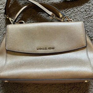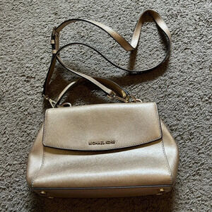MICHAEL KORS Ava Medium Saffiano Leather Gold Shiny Top Handle Crossbody Leather