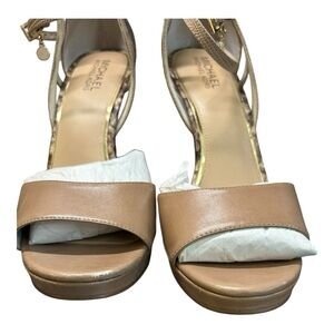 MICHAEL KORS BELLE SANDAL leather Sz 9M Platform Pumps Tan, Brown Women's Heels
